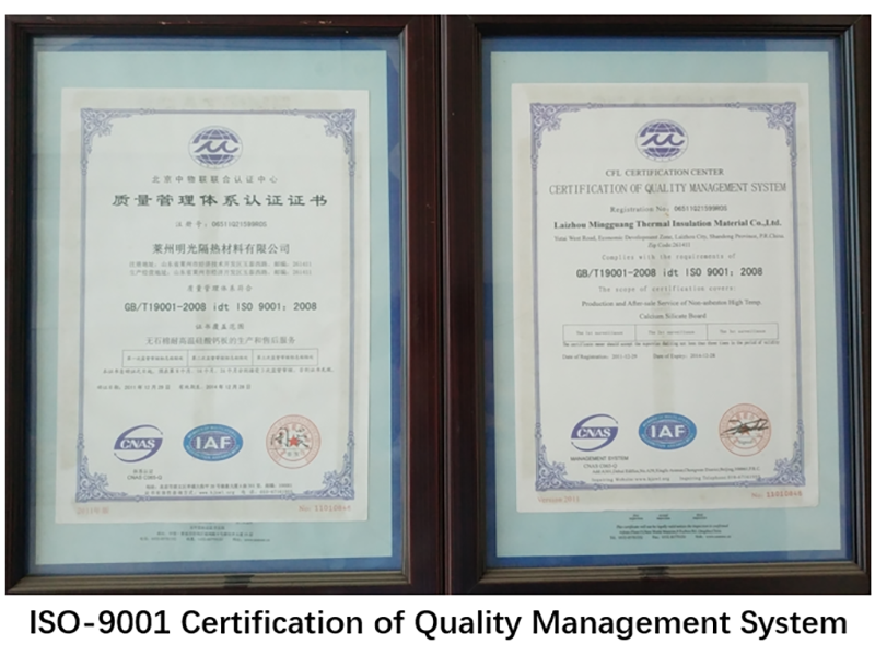 萊州明光隔熱材料有限公司成立于2000年,是國內(nèi)先進的高溫型硅酸鈣產(chǎn)品生產(chǎn)廠家之一。公司研發(fā)能力強,生產(chǎn)設備先進,年產(chǎn)能力突破20000立方米,是一家集研發(fā)、生產(chǎn)、服務為一體的技術型企業(yè)。明光注重產(chǎn)品質量和服務,誠信經(jīng)營,多年來始終按國際質量認證體系標準嚴格生產(chǎn),并通過了ISO9001質量管理體系認證等國際標準,保證了產(chǎn)品和服務的穩(wěn)步提高。本公司的隔熱材料產(chǎn)品廣泛用于冶金、玻璃、陶瓷、石化、機械、鍋爐、電爐、鋼鐵、水泥、石灰等行業(yè),是國家重點工程的“首選產(chǎn)品”...
